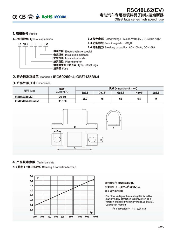 電動(dòng)汽車保護(hù)用熔斷器系列