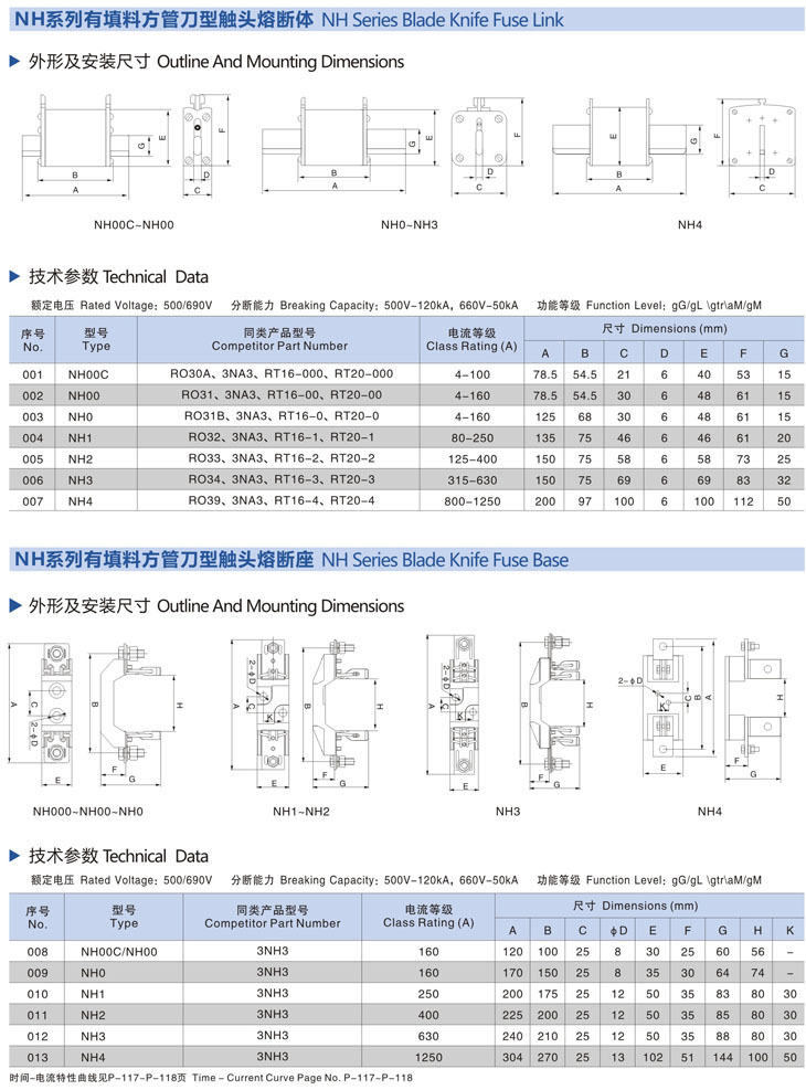 NH雙顯示有填料方管刀型觸頭熔斷體